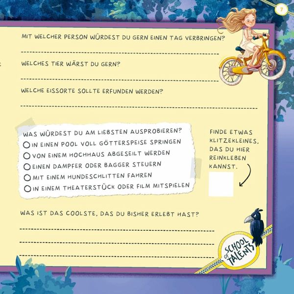 In dieses Album können sich alle Kinder eintragen, lustige Fragen beantworten, malen, kleben und sogar rätseln! Das Freundebuch bietet dabei Platz für bis zu 30 Freundinnen und Freunde. Mit Lesezeichen, Stundenplan, Talente-Quiz und vielem mehr.