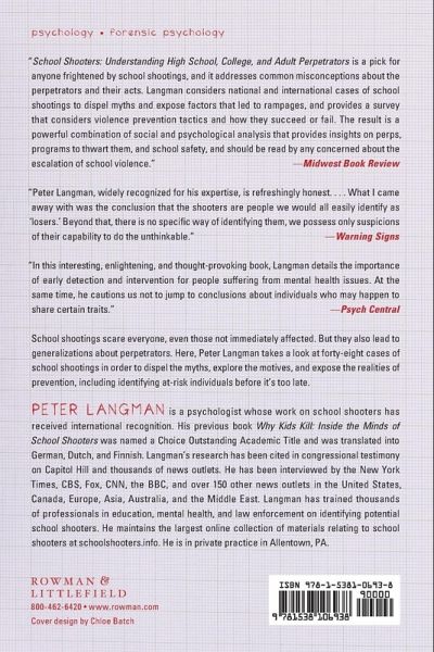 Peter Langmanis a psychologist whose work on school shooters has received international recognition. His previous book, Why Kids Kill: Inside the Minds of School Shooters, was named a Choice Outstanding Academic Title and was translated into German, Dutch, and Finnish. Langman's research has been cited in congressional testimony on Capitol Hill and thousands of news outlets. He has been interviewed by the New York Times, CBS-TV, Fox, CNN, the BBC, and over 150 other news outlets in the USA, Canada, Europe, Asia, Australia, and the Middle East. Langman has trained thousands of professionals in education, mental health, and law enforcement on identifying potential school shooters. He maintains the largest online collection of materials relating to school shooters at schoolshooters.info. He is in private practice in Allentown, PA.