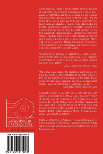 «Rochelle Brock and Greg S. Goodman have done it again: addressing the most pressing issues facing us in education! School Sucks! is a must-read for all who care about changing education for the better!» (Karen T. Carey, CSU Channel Islands)
