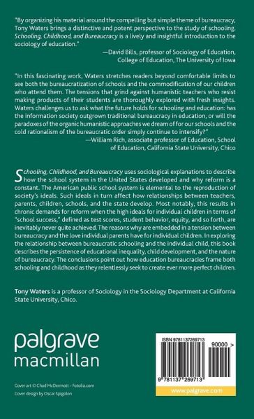 "Often those of us involved in education from the pre-school through teacher education-level of public education have a hard time seeing the big picture of why we end up doing what we do. With this book, the sociologist Tony Waters helps us understand the place of public education in American society and throughout the world. In it, he highlights theinternal tensions within the bureaucracy of education as the system tries to mold emotional children into productive adults in twelve years using an unemotional system to do it. Schooling, Childhood, and Bureaucracy: Bureaucratizing the Child is a valuable addition to those who are trying to understand the place of public education in today's world and tensions inherent in this bureaucratic system." - John Benson, professor, School of Teaching and Learning, Minnesota State University Moorhead