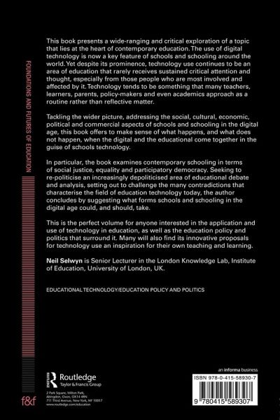 Tackles the 'wider picture' of schools and digital technology - addressing the social, cultural, economic, political and commercial aspects of schools and schooling in the digital age. This book intends to make sense of what happens (and what does not happen) when the digital and the educational come together in the guise of 'schools technology'.