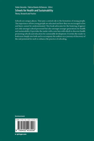 Schools are unique places. They pay a central role in the formation of young people. The importance of how young people are educated and how they are encouraged to live and learn cannot be underestimated. This book advocates for the fostering of agency not only amongst school personnel but also amongst younger generations for health and sustainability. It provides the reader with a new lens with which to discover health promoting schools and education for sustainable development. It invites the reader to look more deeply into both and to accompany the authors on a journey of discovery of the real potential for each to enhance the practice of schooling.