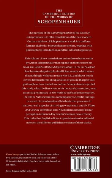 On the Fourfold Root, translated here in a readable and scholarly edition, is an essential preliminary to Schopenhauer's great book The World as Will and Representation. In the companion works Schopenhauer defends his idea that all nature is an expression of will and attacks Newton's account of colour perception.