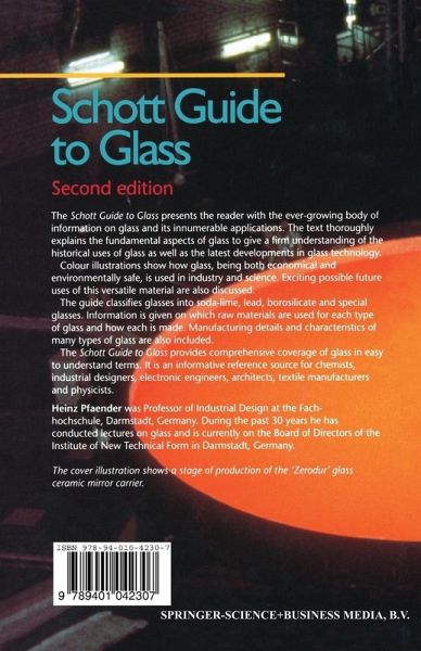 The text thoroughly explains the fundamental aspects of glass...The Schott Guide to Glass provides comprehensive coverage of glass in easy to understand terms. It is an informative reference source for chemists, industrial designers, electronic engineers, architects, textile manufacturers and physicists. - Verre; ...highly recommended - Glass Technology.
