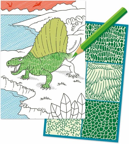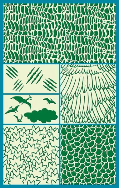 Kleiner Aufwand, große Effekte: Mit den beigefügten Struktur-Schablonen können Kinder die Welt der Dinos mit tollen Mustern versehen. 12 Strukturen stehen dafür auf zwei Schablonenkarten zur Verfügung. Die Schablonen werden vom Umschlag abgeschnitten und dann unter das herausgetrennte Blatt gelegt. Durch einfaches Ausmalen der Fläche entstehen schöne Strukturen wie Schuppen oder Gefieder - und schon wird das Bild zum Leben erweckt! Geeignet für Kinder ab 5 Jahren.