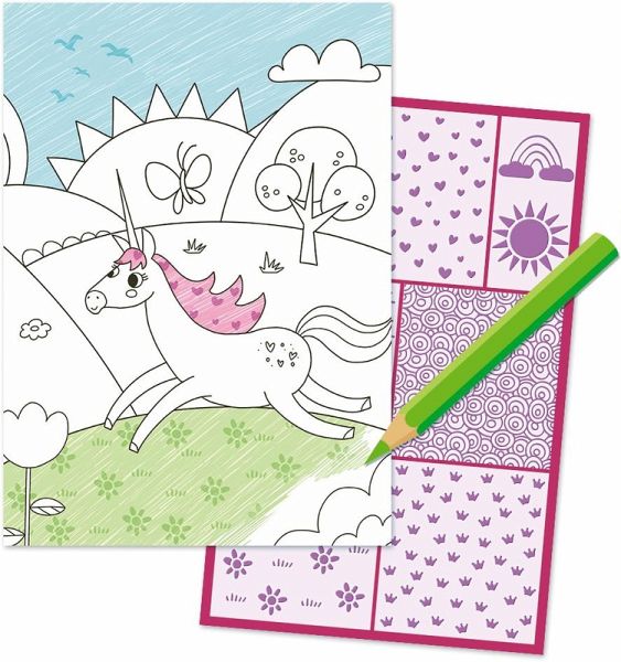 Magische Effekte für magische Tiere. Die niedlichen Einhorn-Motive des Malblocks können kinderleicht mit zauberhaften Mustern verziert werden. 12 Muster sind auf den beigefügten Struktur-Schablonen zu finden. Diese werden ausgeschnitten und unter das Blatt gelegt. Durch einfaches Ausmalen entstehen tolle Strukturen wie Herzen, Kronen, Sterne oder Schmetterlinge. Ausgewöhnlicher Malspaß und ein Muss für alle Einhorn-Fans ab 5 Jahren.
