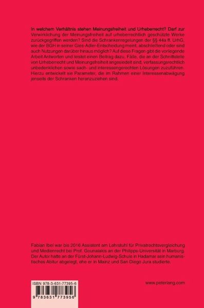In welchem Verhältnis stehen Meinungsfreiheit und Urheberrecht? Darf zur Verwirklichung der Meinungsfreiheit auf urheberrechtlich geschützte Werke zurückgegriffen werden? Sind die Schrankenregelungen der §§ 44a ff. UrhG, wie der BGH in seiner Gies-Adler-Entscheidung meint, abschließend oder sind auch Nutzungen darüber hinaus möglich? Auf diese Fragen gibt die vorliegende Arbeit Antworten und leistet einen Beitrag dazu, Fälle, die an der Schnittstelle von Urheberrecht und Meinungsfreiheit angesiedelt sind, verfassungsrechtlich unbedenklichen sowie sach- und interessengerechten Lösungen zuzuführen. Hierzu entwickelt sie Parameter, die im Rahmen einer Interessenabwägung jenseits der Schranken heranzuziehen sind.