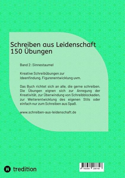 Band 2 der Übungen dreht sich rund um die menschlichen Sinne. Die Schreibaufgaben behandeln jeden Sinn einzeln und üben den Umgang damit anhand der unterschiedlichsten Techniken. Jeder Sinn erhält ein eigenes Kapitel mit jeweils 30 Übungen, so dass keiner zu kurz kommt. In Romanen und Kurzgeschichten liegt der Fokus oft allein auf dem Sehen, doch wenn man seinen Protagonisten erlaubt, zu hören, riechen, schmecken und fühlen, ändert sich nicht nur die Stimmung des Textes, sondern die Leser können sich auch deutlich besser in das Geschehen hineinversetzen. Um die Sinne bewusst in Texten zu verwenden, gibt es im vorliegenden Buch zahlreiche Methoden, die genau das trainieren sollen.