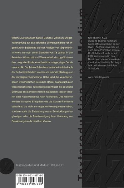 Welche Auswirkungen haben Domäne, Zeitraum und Berufserfahrung auf das berufliche Schreibverhalten von Ingenieuren? Basierend auf der Analyse von Experteninterviews, die über einen Zeitraum von 18 Jahren in den Bereichen Wirtschaft und Wissenschaft durchgeführt wurden, zeigt die Studie eine deutliche ausgeprägte Domänenspezifik. Die Art des Schreibens verändert sich im Laufe der Zeit unterschiedlich intensiv und schnell, abhängig von der jeweiligen Fachrichtung. Dabei sind die Veränderungen in wirtschaftlichen Bereichen stärker ausgeprägt als in wissenschaftlichen. Gleichzeitig beeinflusst die berufliche Erfahrung das Schreibverhalten maßgeblich, jedoch variieren diese Auswirkungen je nach Fachgebiet. Des Weiteren werden disruptive Ereignisse wie die Corona-Pandemie betrachtet, die nicht nur negative Konsequenzen haben, sondern auch die Entstehung neuer Entwicklungen begünstigen oder die Beschleunigung bzw. Hemmung von Entwicklungstrends bewirken können.