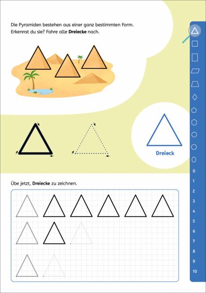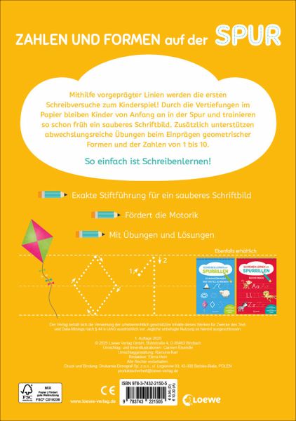 Mithilfe vorgeprägter Linien werden die ersten Schreibversuche zum Kinderspiel! Durch die Vertiefungen im Papier bleiben Kinder von Anfang an in der Spur und trainieren so schon früh ein sauberes Schriftbild. Zusätzlich unterstützen abwechslungsreiche Übungen beim Einprägen geometrischer Formen und der Zahlen von 1 bis 10.