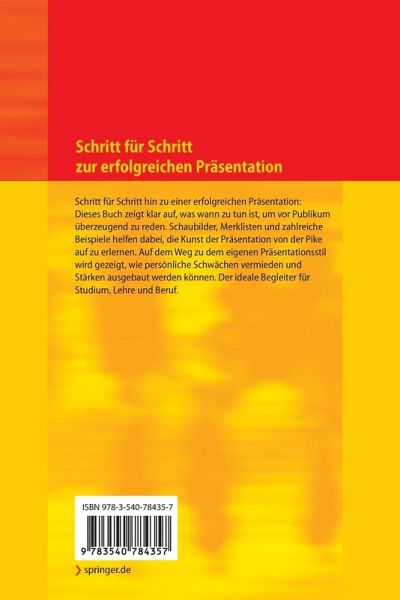 Schritt für Schritt hin zu einer erfolgreichen Präsentation: Dieses Buch zeigt klar auf, was wann zu tun ist, um vor Publikum überzeugend zu reden. Schaubilder, Merklisten und zahlreiche Beispiele helfen dabei, die Kunst der Präsentation von der Pike auf zu erlernen. Auf dem Weg zu dem eigenen Präsentationsstil wird gezeigt, wie persönliche Schwächen vermieden und Stärken ausgebaut werden können. Der ideale Begleiter für Studium, Lehre und Beruf.