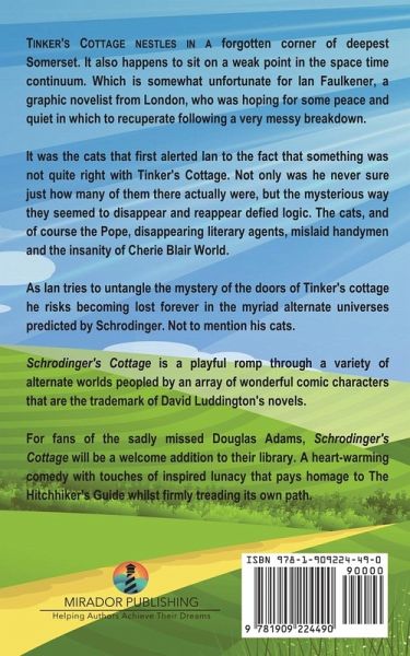 Tinker's Cottage nestles in a forgotten corner of deepest Somerset. It also happens to sit on a weak point in the space time continuum. Which is somewhat unfortunate for Ian Faulkener, a graphic novelist from London, who was hoping for some peace and quiet in which to recuperate following a very messy breakdown. It was the cats that first alerted Ian to the fact that something was not quite right with Tinker's Cottage. Not only was he never sure just how many of them there actually were, but the mysterious way they seemed to disappear and reappear defied logic. The cats, and of course the Pope, disappearing literary agents, mislaid handymen and the insanity of Cherie Blair World. As Ian tries to untangle the mystery of the doors of Tinker's cottage he risks becoming lost forever in the myriad alternate universes predicted by Schrodinger. Not to mention his cats. Schrodinger's Cottage is a playful romp through a variety of alternate worlds peopled by an array of wonderful comic characters that are the trademark of David Luddington's novels. For fans of the sadly missed Douglas Adams, Schrodinger's Cottage will be a welcome addition to their library. A heart-warming comedy with touches of inspired lunacy that pays homage to The Hitchhiker's Guide whilst firmly treading its own path.