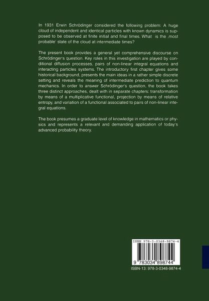 In 1931 Erwin Schrödinger considered the following problem: A huge cloud of independent and identical particles with known dynamics is supposed to be observed at finite initial and final times. What is the "most probable" state of the cloud at intermediate times? The present book provides a general yet comprehensive discourse on Schrödinger's question. Key roles in this investigation are played by conditional diffusion processes, pairs of non-linear integral equations and interacting particles systems. The introductory first chapter gives some historical background, presents the main ideas in a rather simple discrete setting and reveals the meaning of intermediate prediction to quantum mechanics. In order to answer Schrödinger's question, the book takes three distinct approaches, dealt with in separate chapters: transformation by means of a multiplicative functional, projection by means of relative entropy, and variation of a functional associated to pairs of non-linear integral equations. The book presumes a graduate level of knowledge in mathematics or physics and represents a relevant and demanding application of today's advanced probability theory.