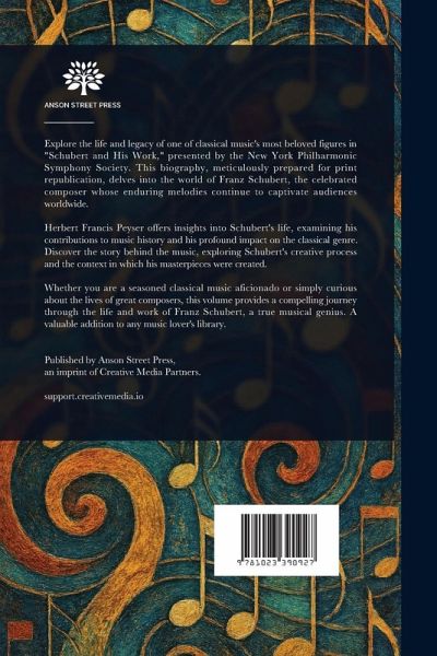 Explore the life and legacy of one of classical music's most beloved figures in "Schubert and His Work," presented by the New York Philharmonic Symphony Society. This biography, meticulously prepared for print republication, delves into the world of Franz Schubert, the celebrated composer whose enduring melodies continue to captivate audiences worldwide. Herbert Francis Peyser offers insights into Schubert's life, examining his contributions to music history and his profound impact on the classical genre. Discover the story behind the music, exploring Schubert's creative process and the context in which his masterpieces were created. Whether you are a seasoned classical music aficionado or simply curious about the lives of great composers, this volume provides a compelling journey through the life and work of Franz Schubert, a true musical genius. A valuable addition to any music lover's library. This work has been selected by scholars as being culturally important, and is part of the knowledge base of civilization as we know it. This work is in the public domain in the United States of America, and possibly other nations. Within the United States, you may freely copy and distribute this work, as no entity (individual or corporate) has a copyright on the body of the work. Scholars believe, and we concur, that this work is important enough to be preserved, reproduced, and made generally available to the public. We appreciate your support of the preservation process, and thank you for being an important part of keeping this knowledge alive and relevant.