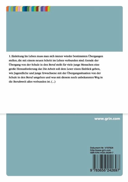 Bachelorarbeit aus dem Jahr 2012 im Fachbereich Sozialpädagogik / Sozialarbeit, Note: 1,7, Fachhochschule Münster (Sozialwesen), Sprache: Deutsch, Abstract: 1.EinleitungIm Leben muss man sich immer wieder bestimmten Übergangen stellen, die mit einem neuen Schritt im Leben verbunden sind. Gerade der Übergang von der Schule in den Beruf stellt für viele junge Menschen eine große Herausforderung dar. Die Arbeit soll dem Leser einen Einblick geben, wie Jugendliche und junge Erwachsene mit der Übergangssituation von der Schule in den Beruf umgehen und was mit diesem noch unbekannten Weg in die Berufswelt alles verbunden ist. Es wird beleuchtet, auf welche Weise hier die Soziale Arbeit eingreifen kann und wo sie ansetzen muss, um für die Schülerinnen und Schüler in dieser Lebensphase eine wichtige Stütze zu sein. Des Weiteren wird sich mit der Arbeit und speziellen Aufgabengebieten der Jugendberufshilfe auseinandergesetzt. Im Hinblick auf die Berufsvorbereitung bzw. den bevorstehenden Berufseinstieg hat sie das Potenzial, als Schlüssel zum Erfolg bei der Übergangsbewältigung zu dienen. Der Forschungszweck dieser Arbeit besteht darin, zu untersuchen, inwieweit sich Schüler in dieser Lebensphase mit den gewünschten Ausbildungsberufen auseinandersetzten und welche Berufsbilder sich gegenwärtig entwickeln. Daher sollte die Soziale Arbeit die Berufsbilder von Schülern kennen und zu verorten wissen, um ihnen eine lebensweltorientierte Arbeit zu garantieren. Im ersten Kapitel wird sich mit dem Thema Übergänge befasst und zuerst beschrieben, was für eine große Herausforderung Übergänge im Leben darstellen und welchen besonderen Einfluss sie auf unseren Lebensweg haben. Daran anschließend wird der Fokus konkret auf den Bereich des Übergangs Schule-Beruf gerichtet. Im letzten Kapitel der Arbeit soll anhand einer Schülerbefragung, in Form eines Gruppeninterviews, empirisch untersucht werden, wie sich die Berufsbilder von Schülern und Schülerinnen aus dem Übergangssystem konkret zusammensetzen. Hier sollte möglichst beleuchtet werden, welche Daten die Befragung geliefert hat und welche Schlussfolgerungen aus der Untersuchung gezogen werden können. Daraufhin soll das Ergebnis Aufschluss darüber geben, ob die Schülerbefragung die im Vorfeld aufgestellte Annahme untermauern kann.