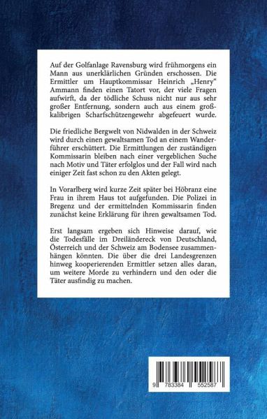 Auf der Golfanlage Ravensburg wird frühmorgens ein Mann aus unerklärlichen Gründen erschossen. Die Ermittler um Hauptkommissar Heinrich "Henry" Ammann finden einen Tatort vor, der viele Fragen aufwirft, da der tödliche Schuss nicht nur aus sehr großer Entfernung, sondern auch aus einem großkalibrigen Scharfschützengewehr abgefeuert wurde. Die friedliche Bergwelt von Nidwalden in der Schweiz wird durch einen gewaltsamen Tod an einem Wanderführer erschüttert. Die Ermittlungen der zuständigen Kommissarin bleiben nach einer vergeblichen Suche nach Motiv und Täter erfolglos und der Fall wird nach einiger Zeit fast schon zu den Akten gelegt. In Vorarlberg wird kurze Zeit später bei Höbranz eine Frau in ihrem Haus tot aufgefunden. Die Polizei in Bregenz und der ermittelnden Kommissarin finden zunächst keine Erklärung für ihren gewaltsamen Tod. Erst langsam ergeben sich Hinweise darauf, wie die Todesfälle im Dreiländereck von Deutschland, Österreich und der Schweiz am Bodensee zusammenhängen könnten. Die über die drei Landesgrenzen hinweg kooperierenden Ermittler setzen alles daran, um weitere Morde zu verhindern und den oder die Täter ausfindig zu machen.