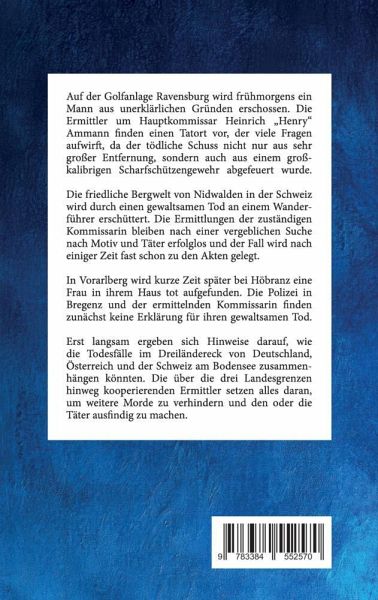 Auf der Golfanlage Ravensburg wird frühmorgens ein Mann aus unerklärlichen Gründen erschossen. Die Ermittler um Hauptkommissar Heinrich "Henry" Ammann finden einen Tatort vor, der viele Fragen aufwirft, da der tödliche Schuss nicht nur aus sehr großer Entfernung, sondern auch aus einem großkalibrigen Scharfschützengewehr abgefeuert wurde. Die friedliche Bergwelt von Nidwalden in der Schweiz wird durch einen gewaltsamen Tod an einem Wanderführer erschüttert. Die Ermittlungen der zuständigen Kommissarin bleiben nach einer vergeblichen Suche nach Motiv und Täter erfolglos und der Fall wird nach einiger Zeit fast schon zu den Akten gelegt. In Vorarlberg wird kurze Zeit später bei Höbranz eine Frau in ihrem Haus tot aufgefunden. Die Polizei in Bregenz und der ermittelnden Kommissarin finden zunächst keine Erklärung für ihren gewaltsamen Tod. Erst langsam ergeben sich Hinweise darauf, wie die Todesfälle im Dreiländereck von Deutschland, Österreich und der Schweiz am Bodensee zusammenhängen könnten. Die über die drei Landesgrenzen hinweg kooperierenden Ermittler setzen alles daran, um weitere Morde zu verhindern und den oder die Täter ausfindig zu machen.