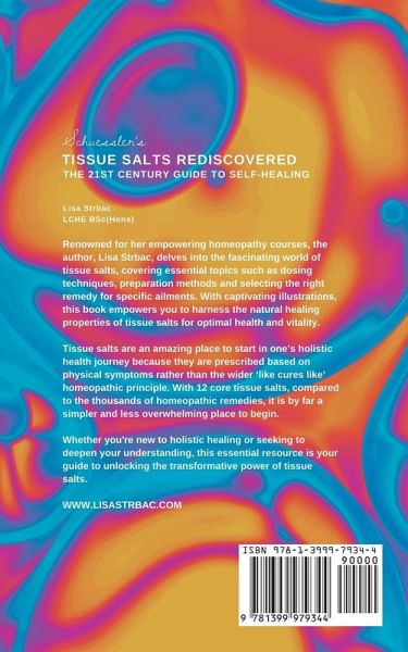 Renowned for her empowering homeopathy courses, the author, Lisa Strbac, delves into the fascinating world of tissue salts, covering essential topics such as dosing techniques, preparation methods and selecting the right remedy for specific ailments. With captivating illustrations, this small and simple guidebook empowers you to harness the natural healing properties of tissue salts for optimal health and vitality. Tissue salts are an amazing place to start in one's holistic health journey because they are prescribed based on physical symptoms rather than the wider 'like cures like' homeopathic principle. With 12 core tissue salts, compared to the thousands of homeopathic remedies, it is by far a simpler and less overwhelming place to begin. Whether you're new to holistic healing or seeking to deepen your understanding, this essential resource is your guide to unlocking the transformative power of tissue salts.