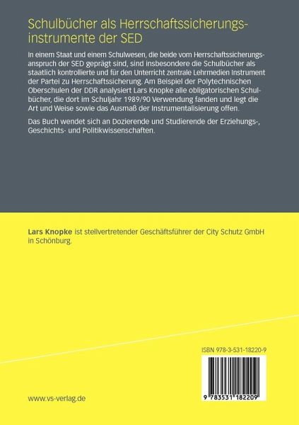 In einem Staat und einem Schulwesen, die beide vom Herrschaftssicherungsanspruch der SED geprägt sind, sind insbesondere die Schulbücher als staatlich kontrollierte und für den Unterricht zentrale Lehrmedien Instrument der Partei zu Herrschaftssicherung. Am Beispiel der Polytechnischen Oberschulen der DDR analysiert Lars Knopke alle obligatorischen Schulbücher, die dort im Schuljahr 1989/90 Verwendung fanden und legt die Art und Weise sowie das Ausmaß der Instrumentalisierung offen.