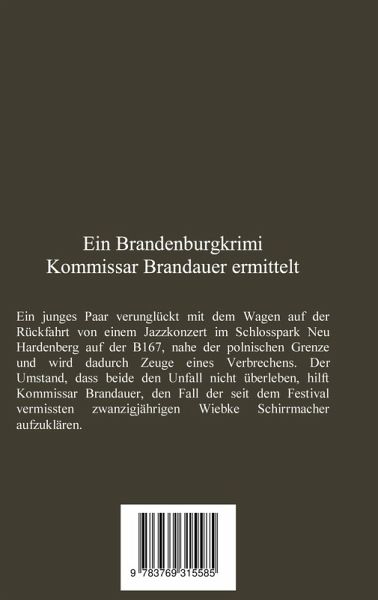 Ein junges Paar verunglückt mit dem Wagen auf der Rückfahrt von einem Jazzkonzert im Schlosspark Neu Hardenberg auf der B167, nahe der polnischen Grenze und wird dadurch Zeuge eines Verbrechens. Der Umstand, dass beide den Unfall nicht überleben, hilft Kommissar Brandauer, den Fall der seit dem Festival vermissten zwanzigjährigen Wiebke Schirrmacher aufzuklären.