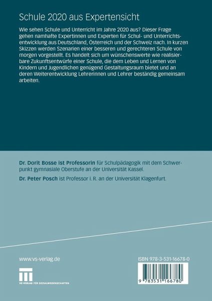 0.- Gesellschaftliche Perspektiven der Schulentwicklung.- Entwicklungslinien des Bildungswesens im 21. Jahrhundert.- Zehn Jahre später - Eine Polemik aus gegebenem Anlass.- Schulen 2020 - Projektionen aufgrund gesellschaftlicher Entwicklungstendenzen.- Tee mit Freinet.- Engagierte Schulentwicklung - Eine Kooperationsaufgabe!.- Bildung in Bewegung - Kontrastive Reflexionen.- Zwischen Erwartungen und Hoffnungen - Schule 2020.- Die Zukunft der öffentlichen Pflichtschule - Ein Essay.- Gemeinsame Schule und Umgang mit Vielfalt.- Unterrichtskultur oder Schulreform - Über eine falsche Alternative.- Ganztagsschule - Zukunftsschule - Ein kinder- und jugendgerechter Lern- und Lebensort.- Eingangsstufe in der Schweiz - Reformschule für alle Kinder von vier bis acht Jahren.- Altersmischung als Schulentwicklungsmodell - Erfahrungen aus der Glocksee-Schule.- Ein Rückblick auf die Entstehung der Offenen Schule Kassel-Waldau.- Zur Bildungsgerechtigkeit der Schule im Jahr 2020.- Eine integrationsfähige Schule für alle.- Auf dem Weg zum Fortschritt - Perspektiven für das Jahr 2020.- Die Zukunft der Reform der "Reformschulen".- Echte Gesamtschule statt Zwei-Säulen-Modell!.- Unterricht 20 Jahre nach der ersten PISA-Studie.- Schule 2020 hat schon begonnen.- Unterricht im Jahre 2020.- Individualisierung.- Antizipatorisches Lernen mit Planspielen.- Über den Plan hinaus: Schule als Lebenswerkstatt.- Schule - ein Haus des Lernens.- Einschulung und schulischer Anfangsunterricht im Jahr 2020 - Eckpunkte einer Vision.- Das Verstehen des Verstehens am Beispiel von Martin Wagenschein.- Auf dem fliegenden Teppich über der künftigen Sekundarstufe II.- Wünsche an eine Schule mit Zukunft.- Schule und Mathematikunterricht als Inseln?.- Historisch-politischeBildung zum Thema Nationalsozialismus - künftig nur eine Frage der Menschenrechte?.- Über die Kulturbedeutung der sogenannten Kulturtechniken.- Pädagogik der Anerkennung und Mentalisierung - Biografische Spielfilmarbeit mit dissozialen jungen Strafgefangenen.- Was für einen Spaß sie hatten.- Eigensinnige Schrifträume - Zur Zukunft einer alten Projektidee.- Aufmerksam machen und aufmerksam werden - Unterrichtsauftakte bei Aebli und Wagenschein.- "Lernen ist das Persönlichste auf der Welt ..." - Personorientierung im Unterricht erfordert Haltung.- Das Schulbuch der Zukunft oder Die Zukunft des Schulbuchs?.- Schule 2020 - Jahrgangsklassen ade!.- Lehrerbildung.- Bildung macht Schule - Gedanken über Wesen und Wirkung von Bildung im Rückblick auf Begegnungen mit gebildeten Lehrpersonen.- Gleichwertige universitäre Bildung für den Elementar-, Primar- und Sekundarbereich in Deutschland.- John Dewey in der Lehrerbildung.- Beziehungskompetenz als professionelle Anforderung an zukünftige Lehrerinnen und Lehrer.- "Nicht zu viel und nicht zu wenig" - Grundlagen praktischen Tuns.- Forschen.- Es gibt nichts Gutes - außer man tut es!!.- Ein Fallbeispiel zur fachdidaktischen Diagnostik und zur Ethik der Leistungseinschätzung in der Grundschule.- Schulentwicklung.- Schulentwicklung 2020 - Wissenschaftliche Begleitung als "Lernberatung" für lernende Schulen.- Der Weg zum selbständigen Lernen mit Rudolf Messner - Ein Rückblick aus der Offenen Schule Waldau.- Wie Lehrer, Schüler und Eltern Schule und Unterricht 2020 sehen - Einsichten aus 20 Jahren Schulentwicklung mit Verfahren der prozessorientierten Zukunftsmoderation.- "Die Offene Schule" - Das FDP-Modell - Eine Alternative?.- Bedingungen einer erfolgreichenSchulreformarbeit, die auch 2020 gelten.- Geschlechterdemokratie als Perspektive der Schulentwicklung.- Wie kommt die Haltung in den Körper?.- Aussichten.- Die Berücksichtigung der elementaren Dimensionen biografischer Arbeit in der Schule der Zukunft.- Auf dem Weg zur "selbständigen Schule" - Perspektiven für 2020.- Der allmähliche Abschied vom Gymnasium.- Die Schule im Spannungsfeld des Veränderns und Bewahrens.