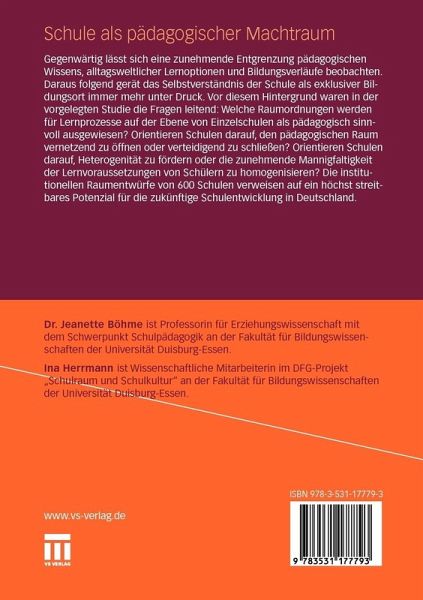 Gegenwärtig lässt sich eine zunehmende Entgrenzung pädagogischen Wissens, alltagsweltlicher Lernoptionen und Bildungsverläufe beobachten. Daraus folgend gerät das Selbstverständnis der Schule als exklusiver Bildungsort immer mehr unter Druck. Vor diesem Hintergrund waren in der vorgelegten Studie die Fragen leitend: Welche Raumordnungen werden für Lernprozesse auf der Ebene von Einzelschulen als pädagogisch sinnvoll ausgewiesen? Orientieren Schulen darauf, den pädagogischen Raum vernetzend zu öffnen oder verteidigend zu schließen? Orientieren Schulen darauf, Heterogenität zu fördern oder die zunehmende Mannigfaltigkeit der Lernvoraussetzungen von Schülern zu homogenisieren? Die institutionellen Raumentwürfe von 600 Schulen verweisen auf ein höchst streitbares Potenzial für die zukünftige Schulentwicklung in Deutschland.