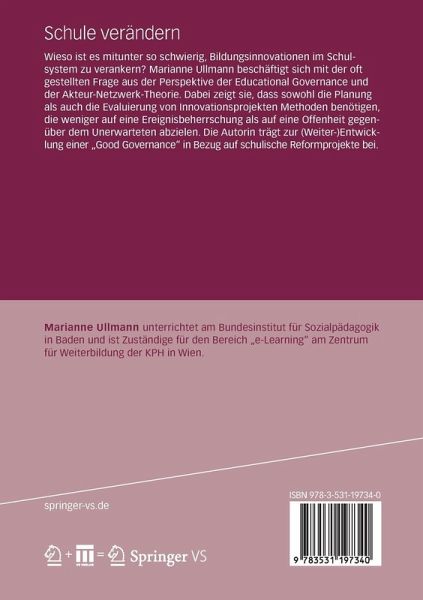 Wieso ist es mitunter so schwierig, Bildungsinnovationen im Schulsystem zu verankern? Marianne Ullmann beschäftigt sich mit der oft gestellten Frage aus der Perspektive der Educational Governance und der Akteur-Netzwerk-Theorie. Dabei zeigt sie, dass sowohl die Planung als auch die Evaluierung von Innovationsprojekten Methoden benötigen, die weniger auf eine Ereignisbeherrschung als auf eine Offenheit gegenüber dem Unerwarteten abzielen. Die Autorin trägt zur (Weiter-)Entwicklung einer "Good Governance" in Bezug auf schulische Reformprojekte bei.