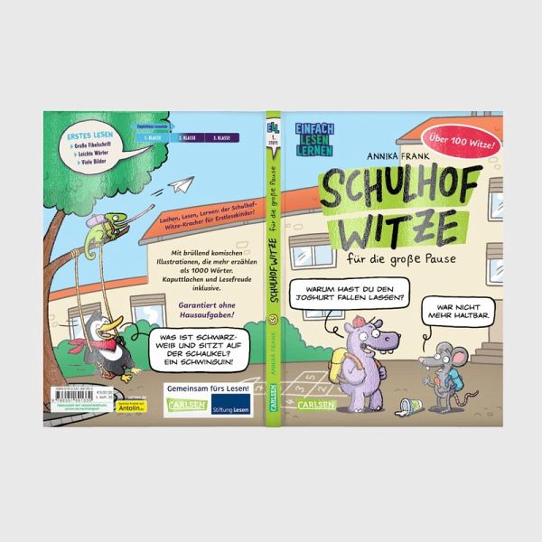 1. Lesestufe: Große Fibelschrift, leichte Wörter und ein ausgewogenes Text-Bild-VerhältnisScherzfragen und Kinderwitze in Kombination mit vielen bunten Bildern Cartoons und Comicelemente, um die Sehgewohnheiten von Kindern zu berücksichtigen Ab 6/7 Jahren geeignet: Ideal für alle Schulanfänger_innen, die sich mit dem Lesen noch schwertun