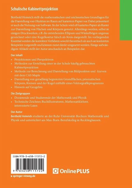 Berthold Heinrich stellt die mathematischen und zeichnerischen Grundlagen für die Darstellung von Objekten im Raum auf kariertem Papier vor. Dabei präsentiert er auch die Nutzung von Software. In der Schule wird oft kariertes Papier als Raster zur Darstellung von Flächen und Körpern genutzt. Allerdings werden, selbst in einigen Druckwerken, z.B. die entstehenden Ellipsen und Winkelbögen ungenau gezeichnet oder eine Kugelkontur falsch als Kreis dargestellt. Im vorliegenden Essential werden die korrekten Verfahren sowohl theoretisch als auch an konkreten Beispielen vorgestellt und können meist direkt umgesetzt werden. Einige aufwändigere Abläufe stellt der Autor anschaulich an Beispielen dar.