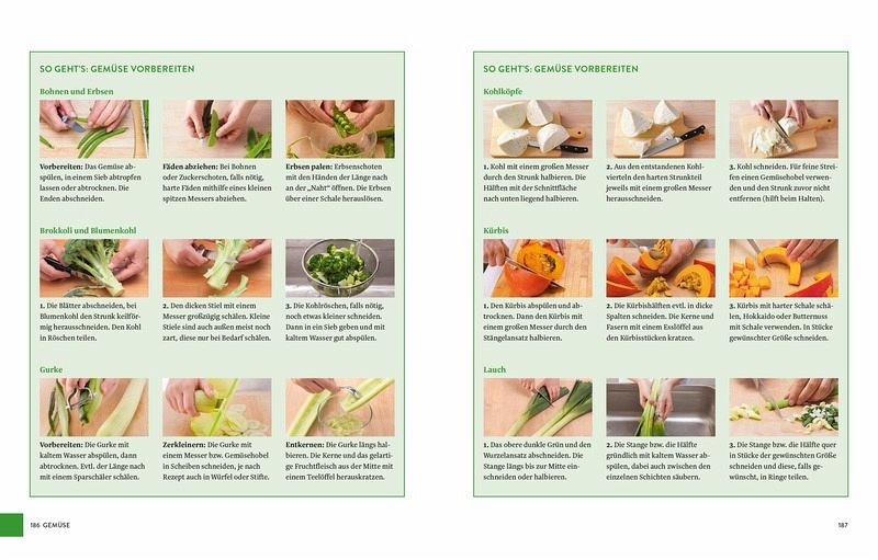 Basisrezepte, Klassiker und Trendrezepteleicht verständliche Schritt-für-Schritt-AnleitungenRatgeberteil mit Warenkunde und KochtechnikenRezeptesammlung: Suppen, Salate, Gemüse, Fleisch, Wild & Geflügel, Fisch & Meeresfrüchte, Kartoffeln, Teigwaren & Reis, Saucen und DessertsEmpfehlungen zu passenden Beilagen, Hauptgerichten oder Dessertshilfreiche Tipps