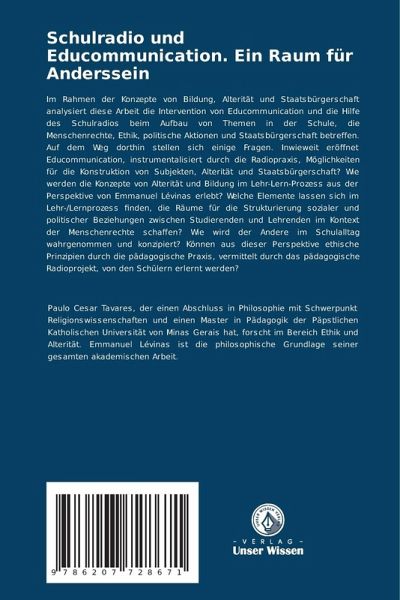 Im Rahmen der Konzepte von Bildung, Alterität und Staatsbürgerschaft analysiert diese Arbeit die Intervention von Educommunication und die Hilfe des Schulradios beim Aufbau von Themen in der Schule, die Menschenrechte, Ethik, politische Aktionen und Staatsbürgerschaft betreffen. Auf dem Weg dorthin stellen sich einige Fragen. Inwieweit eröffnet Educommunication, instrumentalisiert durch die Radiopraxis, Möglichkeiten für die Konstruktion von Subjekten, Alterität und Staatsbürgerschaft? Wie werden die Konzepte von Alterität und Bildung im Lehr-Lern-Prozess aus der Perspektive von Emmanuel Lévinas erlebt? Welche Elemente lassen sich im Lehr-/Lernprozess finden, die Räume für die Strukturierung sozialer und politischer Beziehungen zwischen Studierenden und Lehrenden im Kontext der Menschenrechte schaffen? Wie wird der Andere im Schulalltag wahrgenommen und konzipiert? Können aus dieser Perspektive ethische Prinzipien durch die pädagogische Praxis, vermittelt durch das pädagogische Radioprojekt, von den Schülern erlernt werden?