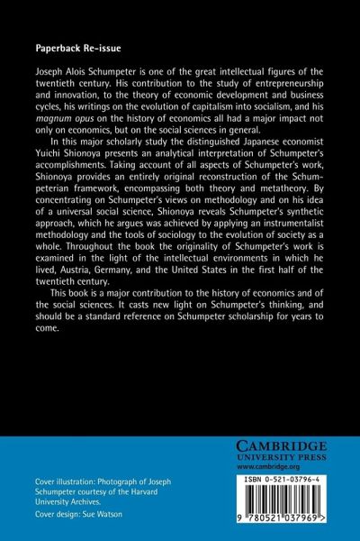 This book is a comprehensive investigation of the work of Joseph Alois Schumpeter (1883–1950), one of the great economists of the twentieth century. In the first study of its kind, Yuichi Shionoya highlights Schumpeter's methodological views and emphasizes his ideal of a universal social science. Taking on board all aspects of his work, he reconstructs a system which encompasses theory (economic statics, economic dynamics, economic sociology) and metatheory (philosophy of science, history and sociology of science). The originality of Schumpeter's work - which the author calls the two-structure approach to the evolution of mind and society - is examined in the light of the intellectual field in Germany and Austria in the early twentieth century. A major contribution to the history of economic thought, this book will be the standard of Schumpeter scholarship for years to come.