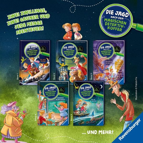 Ein geheimnisvoller Koffer steht im Mittelpunkt der Erstlesereihe "Die Jagd nach dem magischen Detektivkoffer" von Cally Stronk. Die Zwillinge Marie und Lukas bekommen ihn an ihrem 7. Geburtstag geschenkt. Bald stellt sich heraus, dass die Gegenstände im Koffer magische Fähigkeiten haben! Doch auch zwei Ganoven sind hinter dem Koffer her... Eine abenteuerliche Jagd beginnt und die Zwillinge stolpern von einem Kriminalfall in den nächsten. Der Clou: Die Leser können den Zwillingen beim Lösen der Fälle behilflich sein. Ein großer Lesespaß für alle Krimifans ab 7 Jahren!