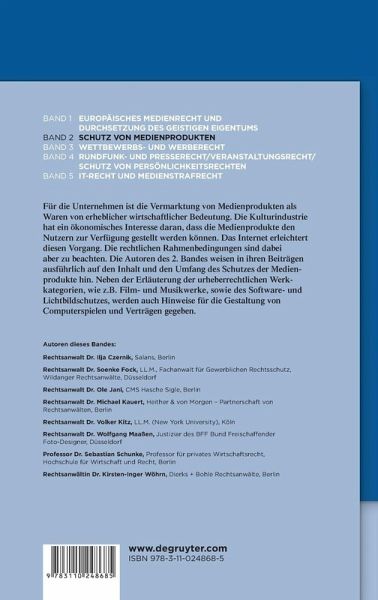 Für die Unternehmen ist die Vermarktung von Medienprodukten als Waren von erheblicher wirtschaftlicher Bedeutung. Die Kulturindustrie hat ein ökonomisches Interesse daran, dass die Medienprodukte den Nutzern zur Verfügung gestellt werden können. Das Internet erleichtert diesen Vorgang. Die rechtlichen Rahmenbedingungen sind dabei aber zu beachten. Die Autoren des 2. Bandes weisen in ihren Beiträgen ausführlich auf den Inhalt und den Umfang des Schutzes der Medienprodukte hin. Neben der Erläuterung der urheberrechtlichen Werkkategorien, wie z.B. Film- und Musikwerke, sowie des Software- und Lichtbildschutzes, werden auch Hinweise für die Gestaltung von Computerspielen und Verträgen gegeben.