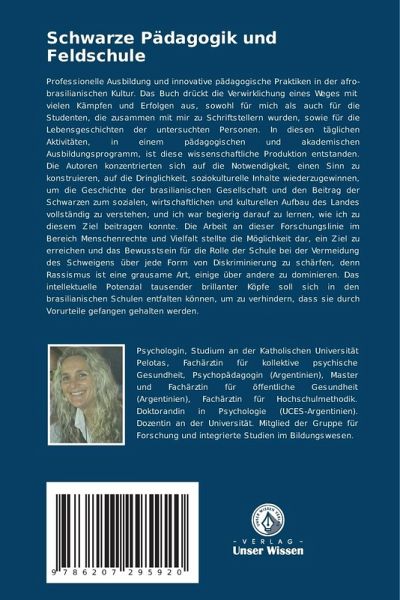 Professionelle Ausbildung und innovative pädagogische Praktiken in der afro-brasilianischen Kultur. Das Buch drückt die Verwirklichung eines Weges mit vielen Kämpfen und Erfolgen aus, sowohl für mich als auch für die Studenten, die zusammen mit mir zu Schriftstellern wurden, sowie für die Lebensgeschichten der untersuchten Personen. In diesen täglichen Aktivitäten, in einem pädagogischen und akademischen Ausbildungsprogramm, ist diese wissenschaftliche Produktion entstanden. Die Autoren konzentrierten sich auf die Notwendigkeit, einen Sinn zu konstruieren, auf die Dringlichkeit, soziokulturelle Inhalte wiederzugewinnen, um die Geschichte der brasilianischen Gesellschaft und den Beitrag der Schwarzen zum sozialen, wirtschaftlichen und kulturellen Aufbau des Landes vollständig zu verstehen, und ich war begierig darauf zu lernen, wie ich zu diesem Ziel beitragen konnte. Die Arbeit an dieser Forschungslinie im Bereich Menschenrechte und Vielfalt stellte die Möglichkeit dar, ein Ziel zu erreichen und das Bewusstsein für die Rolle der Schule bei der Vermeidung des Schweigens über jede Form von Diskriminierung zu schärfen, denn Rassismus ist eine grausame Art, einige über andere zu dominieren. Das intellektuelle Potenzial tausender brillanter Köpfe soll sich in den brasilianischen Schulen entfalten können, um zu verhindern, dass sie durch Vorurteile gefangen gehalten werden.