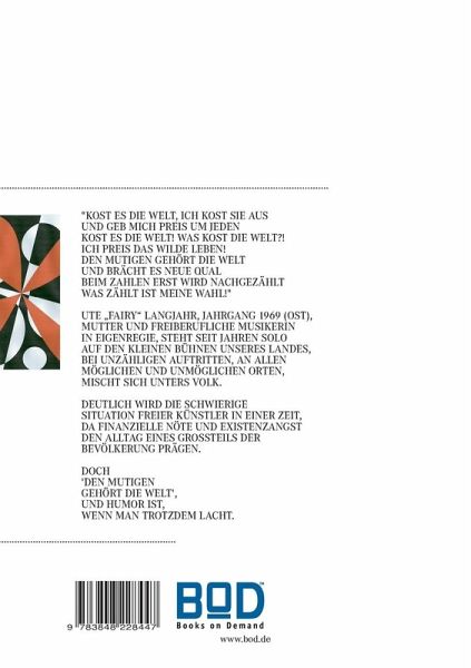 "KOST ES DIE WELT, ICH KOST SIE AUSUND GEB MICH PREIS UM JEDENKOST ES DIE WELT! WAS KOST DIE WELT?!ICH PREIS DAS WILDE LEBEN!DEN MUTIGEN GEHÖRT DIE WELTUND BRÄCHT ES NEUE QUALBEIM ZAHLEN ERST WIRD NACHGEZÄHLTWAS ZÄHLT IST MEINE WAHL!"UTE "FAIRY" LANGJAHR, JAHRGANG 1969 (OST),MUTTER UND FREIBERUFLICHE MUSIKERININ EIGENREGIE, STEHT SEIT JAHREN SOLOAUF DEN KLEINEN BÜHNEN UNSERES LANDES, BEI UNZÄHLIGEN AUFTRITTEN, AN ALLENMÖGLICHEN UND UNMÖGLICHEN ORTEN, MISCHT SICH UNTERS VOLK.DEUTLICH WIRD DIE SCHWIERIGESITUATION FREIER KÜNSTLER IN EINER ZEIT,DA FINANZIELLE NÖTE UND EXISTENZANGSTDEN ALLTAG EINES GROSSTEILS DERBEVÖLKERUNG PRÄGEN.DOCH'DEN MUTIGENGEHÖRT DIE WELT',UND HUMOR IST,WENN MAN TROTZDEM LACHT.MORGENSTERNKLEINER STERN AM MORGENUNTERM FRÜHSTÜCKSTISCHLAG AM BODEN, SCHIMMERTE IM WINTERLICHTNACH DER NACHT, ICH HOB IHN SACHTEAUF DIE FINGERSPITZEN, UND ICH LACHTEZWISCHEN BRÖTCHEN BUTTER BUNA- LEBERWURSTSCHIMMERTE ER FROH UND HAT VON NICHTS GEWUSSTKÜHLES LAKEN NICHT AUF HEISSEM LEIBSCHEUER KÜSSE ATEMLOSE ZÄRTLICHKEITHAB IHN MIR BEHUTSAM AUFGEHOBENIN DIE LADE 'SCHÖNE ZEIT' GESCHOBENEIN GEFASSTES SCHÖN GESCHENKTER STUNDENUNTER GUTEM STERN. ER IST GEFUNDENKLEINER STERN AM MORGENUNTERM FRÜHSTÜCKSTISCHLAG AM BODEN, SCHIMMERTE IM WINTERLICHTNACH DER NACHT, ICH HOB IHN SACHTEAUF DIE FINGERSPITZEN, UND ICH LACHTESCHWARZE PERLENVERLUSTANGST WIRFT MISSTRAUNSCHREIENDE STEINERNE SCHATTENIN DIE GROTTE DER TRÄUMENDEN TRÄNENWELLEN ZIRKEL DER ANGSTZERSCHELLEN AM UFER DER LIEBEZERBERSTEN ZU SCHWARZEN PERLENFÜLLEN DAS GEFÄSS DIESES WERDENSZUVIEL HELLER SCHEIN MACHT BLINDICH LIEBE AUCH DEN MATTEN SCHIMMERSCHWARZER PERLEN