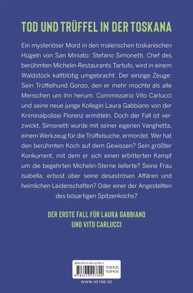 handelt es sich um Simonettis eigene Vanghetta. Laura Gabbiano und Commissario Vito Carlucci haben…mehrAm Tag, als Commissaria Laura Gabbiano ihren Dienst bei der Kriminalpolizei Florenz antritt, geschieht ein mysteriöser Mord. Sternekoch Stefano Simonetti liegt tot in den Hügeln von San Miniato. Neben sich als einziger Zeuge sein Trüffelsuchhund Gonzo, der ihm alles bedeutete. Bei der Mordwaffe handelt es sich um Simonettis eigene Vanghetta. Laura Gabbiano und Commissario Vito Carlucci haben schnell zwei Hauptverdächtige. Hat Simonettis Frau ihn aus Wut über seine zahlreichen Affären umgebracht? Oder etwa sein größter Konkurrent, der Simonetti bezichtigt, mit einem von ihm gestohlenen Rezept einen Stern erkocht zu haben? Oder stecken ganz andere Gründe hinter dem Mord?