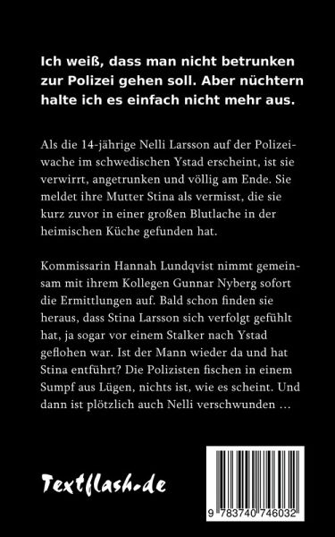 Als die 14-jährige Nelli Larsson auf der Polizeiwache im schwedischen Ystad erscheint, ist sie verwirrt, leicht angetrunken und völlig am Ende. Sie meldet ihre Mutter Stina als vermisst, die sie kurz zuvor in einer großen Blutlache in der heimischen Küche gefunden hat. Kommissarin Hannah Lundqvist nimmt gemeinsam mit ihrem Kollegen Gunnar Nyberg sofort die Ermittlungen auf. Bald schon finden die beiden heraus, dass Stina Larsson sich verfolgt gefühlt hat, ja sogar vor einem Stalker nach Ystad geflohen war. Ist der Mann wieder da und hat Stina entführt? Die Polizisten fischen in einem Sumpf aus Lügen, nichts ist, wie es scheint. Und dann ist plötzlich auch Nelli verschwunden ...