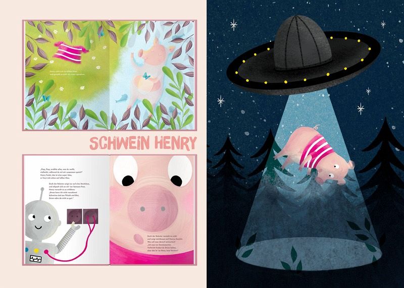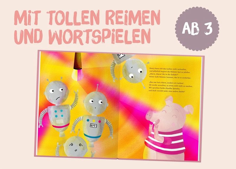 Schweinchen Henry staunt nicht schlecht, als eine seltsame Maschine vom Himmel fällt. Neugierig kommt er näher - und findet sich wenig später in einem echten Raumschiff wieder. Doch die Außerirdischen verstehen ihn völlig falsch! Roboter Piep3 will die Erde erforschen, doch nichts läuft wie geplant. Die Maschinen hier sind so ... unfreundlich! Warum redet denn niemand mit ihm? Zwei lustige Geschichten voller Missverständnisse - über das Fremdsein, verrückten Begegnungen und die wunderbare Kunst, sich trotzdem zu verstehen.