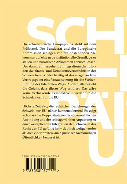 Die schweizerische Europapolitik steht auf dem Prüfstand. Der Bundesrat und die Europaische Kommission schlagen vor, die bestehenden Abkommen auf eine neue institutionelle Grundlage zu stellen und zusatzliche Abkommen abzuschliessen. Der damit einhergehende Integrationsschritt fordert das Staats- und Demokratieverstandnis in der Schweiz heraus. Gleichzeitig ist das ausgehandelte Vertragspaket eine Voraussetzung für die Weiterführung des bilateralen Wegs. Andernfalls besteht die Gefahr, dass dieser Weg erodiert. Das ware keine verlockende Perspektive - weder für die Schweiz noch für die EU.Hochste Zeit also, die rechtlichen Beziehungen der Schweiz zur EU naher kennenzulernen! Es zeigt sich, dass die Doppelstrategie der volkerrechtlichen Anbindung und der selbstgewahlten Anpassung zu einer weitgehenden Integration der Schweiz in das Recht der EU geführt hat - deutlich weitgehender als dies einer breiten, auch juristisch fachkundigen Offentlichkeit bewusst ist.