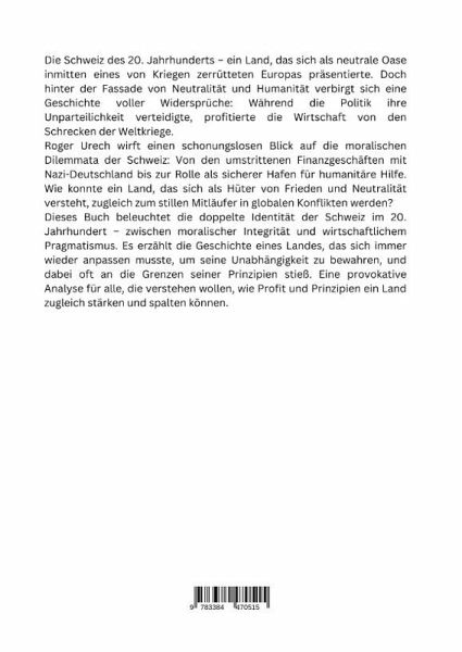 Die Schweiz des 20. Jahrhunderts - ein Land, das sich als neutrale Oase inmitten eines von Kriegen zerrütteten Europas präsentierte. Doch hinter der Fassade von Neutralität und Humanität verbirgt sich eine Geschichte voller Widersprüche: Während die Politik ihre Unparteilichkeit verteidigte, profitierte die Wirtschaft von den Schrecken der Weltkriege.Roger Urech wirft einen schonungslosen Blick auf die moralischen Dilemmata der Schweiz: Von den umstrittenen Finanzgeschäften mit Nazi-Deutschland bis zur Rolle als sicherer Hafen für humanitäre Hilfe. Wie konnte ein Land, das sich als Hüter von Frieden und Neutralität versteht, zugleich zum stillen Mitläufer in globalen Konflikten werden?Dieses Buch beleuchtet die doppelte Identität der Schweiz im 20. Jahrhundert - zwischen moralischer Integrität und wirtschaftlichem Pragmatismus. Es erzählt die Geschichte eines Landes, das sich immer wieder anpassen musste, um seine Unabhängigkeit zu bewahren, und dabei oft an die Grenzen seiner Prinzipien stieß. Eine provokative Analyse für alle, die verstehen wollen, wie Profit und Prinzipien ein Land zugleich stärken und spalten können.Falls Sie weitere Akzente oder Schwerpunkte wünschen, passe ich den Text gerne an!