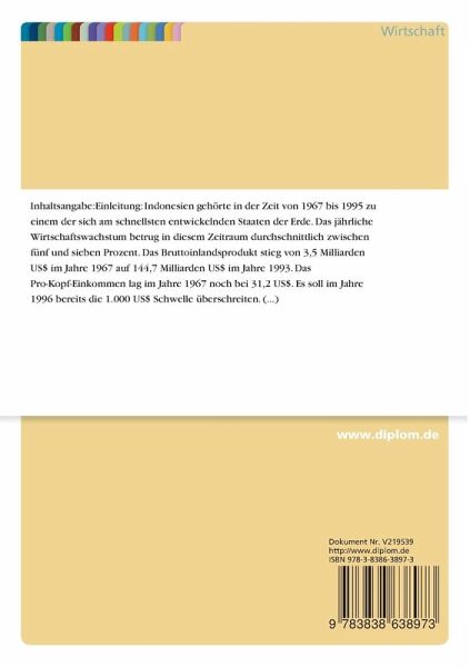 Es erhebt sich folgende Frage: Wäre der indonesische Aufschwung auch ohne ausländische Investitionen möglich gewesen? In dieser Arbeit wird der Anteil der ausländischen Investitionen an der indonesischen wirtschaftlichen Entwicklung in den Jahren von 1967 bis 1995 untersucht. Folgende Fragen stehen im Mittelpunkt: Mit welchen Zielstellungen waren ausländische Investitionen im Rahmen der indonesischen Wirtschaftsstrategie verbunden, wie verlief die Entwicklung der ausländischen Investitionen und welche Ergebnisse wurden erreicht?
