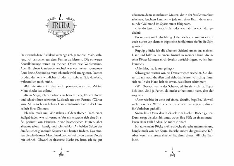 Dottie kann es kaum fassen: Frieda ist mit ihr ins 21. Jahrhundert gekommen! Die Zukunft erscheint der Baronesse genauso abenteuerlich, wie sie sich diese immer ausgemalt hatte. Alles ist heller und lauter und schneller. Es gibt Eiscreme mitten im Sommer, Autos, Fahrräder, Musikkästchen mit zweifelhafter Autokorrektur ... Und dass man hier selbst kochen muss, ist längst nicht die größte Herausforderung! Doch die grenzenlose Freiheit endet spätestens dann, wenn man als Vierzehnjährige ohne Pass in ein Flugzeug steigen will.