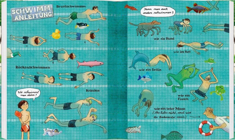 Dieses kunterbunte Buch bietet fast alles über Schwimmerinnen und Nichtschwimmer, Turmspringer und Nichtspringerinnen, Bademeisterinnen und Schwimmmeister, Pommes-frites-Hunger, Schwimmversuche und Mut, Schwimmabzeichen (echte und solche, die es geben sollte!), Schwimmen drinnen und draußen und vieles mehr!Für alle, die gerne schwimmen oder es lernen möchten. Für Mutige und nicht so Mutige, für Könner, Übende und Beobachtendeder Künstlerin Eilika Mühlenberg liebevoll mit Collagen, Fotos, Zeichnungen, Comics und Wimmelbildern illustriert. Das ideale Geschenk für alle Kinder vor dem Schwimmkurs. Spätestens in der Grundschule sollte jedes Kind schwimmen lernen; das ist wichtig und rettet Leben. Und Schwimmen macht wahnsinnig viel Spaß - das kann man in diesem Buch sehen. Also: ab ins Wasser und Schwimmen lernen!