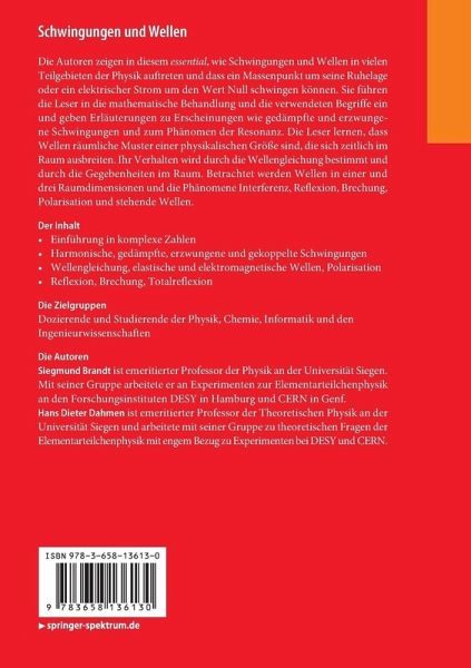 Die Autoren zeigen in diesem essential, wie Schwingungen und Wellen in vielen Teilgebieten der Physik auftreten und dass ein Massenpunkt um seine Ruhelage oder ein elektrischer Strom um den Wert Null schwingen können. Sie führen die Leser in die mathematische Behandlung und die verwendeten Begriffe ein und geben Erläuterungen zu Erscheinungen wie gedämpfte und erzwungene Schwingungen und zum Phänomen der Resonanz. Die Leser lernen, dass Wellen räumliche Muster einer physikalischen Größe sind, die sich zeitlich im Raum ausbreiten. Ihr Verhalten wird durch die Wellengleichung bestimmt und durch die Gegebenheiten im Raum. Betrachtet werden Wellen in einer und drei Raumdimensionen und die Phänomene Interferenz, Reflexion, Brechung, Polarisation und stehende Wellen.