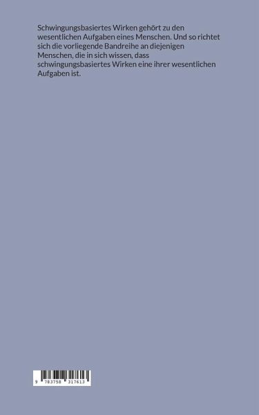 Schwingungsbasiertes Wirken gehört zu den wesentlichen Aufgaben eines Menschen. Und so richtet sich die vorliegende Bandreihe an diejenigen Menschen, die in sich wissen, dass schwingungsbasiertes Wirken eine ihrer wesentlichen Aufgaben ist.