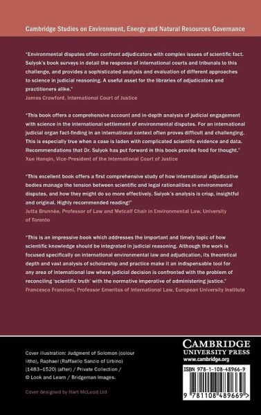 Part I. The Three-Fold Challenge of Engaging with Science in International Environmental Adjudication: 1. Introduction to a comparative study on judicial engagement with science; 2. The rules of judicial engagement with science: a three-fold challenge; Part II. Techniques for Judicial Engagement with Science in the Practice of International Courts and Tribunals: 3. Judicial engagement with science in the environmental case-law of the international court of justice; 4. Science in the practice of inter-state arbitral tribunals; 5. Science in the environmental jurisprudence of regional human rights courts; 6. Scientific claims before the WTO; 7. Science in the practice of investment arbitral tribunals; 8. Science appears before the international tribunal for the law of the sea; Part III. Engaging with Scientific Knowledge in the Judicial Reasoning: 9. Trends in judicial engagement with science: a comparative assessment; 10. Science and the legitimacy of judicial reasoning; 11. Conclusion; Bibliography; Index.
