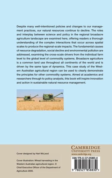 This book was first published in 2006. Despite many well-intentioned policies and changes to management practices, the world's natural resources continue to decline. The roles and interplay between science and policy in the regional broadacre agriculture landscape are examined here, offering readers a thorough understanding of the complex interactions that occur across spatial scales to produce the regional-scale impacts. The fundamental causes of resource degradation, social decline and environmental pollution are addressed, examining the cross-scale drivers from the individual farm level to the global level of commodity systems. Broadacre agriculture is a common land use throughout all continents of the world and is driven by the same type of dynamics, and this case study of the Western Australia agricultural region can be used to clearly demonstrate the principles for other agricultural systems. Aimed at academics, ranging from researchers through to policy analysts, this book will inspire innovation and action in sustainable natural resource management.