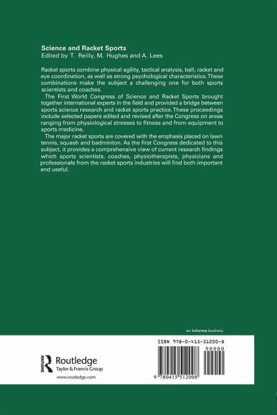 This volume contains papers from the First World Congress of Science and Racket Sports held in Runcorn from July 9 to 13th, 1993. The programme consisted of 6 keynote addresses, 6 workshop sessions, 28 oral communications and 16 poster presentations. Manuscripts written up following the Congress were subject to peer review and editorial judgement prior to acceptance for the Proceedings. The volume is organised into parts based on scientific disciplines. Material falling into physiological topics have been split into those that report investigations of demands of racket sports, and those detailing fitness profiles or fitness testing of players. Similarly papers concerned with biomechanics and mechanics have been distinguished into those primarily concerned with force or stroke analysis and those focused on rackets or equipment in the racket sports. The Sports Medicine section includes papers that might have been placed elsewhere in the book but for their highlighting of injury or injury risk. Whole sections are devoted to psychology and to match analysis in the racket sports.