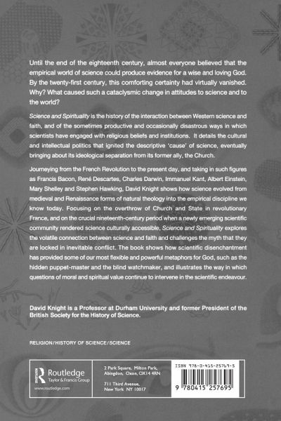 Until the end of the eighteenth century, almost everyone believed that the empirical world of science could produce evidence for a wise and loving God. By the twenty-first century this comforting certainty has almost vanished. What caused such a cataclysmic change in attitudes to science and to the world? Science and Spirituality offers a new history of the interaction between Western science and faith, which explores their volatile connection, and challenges the myth of their being locked in inevitable conflict. Journeying from the French Revolution to the present day, and taking in such figures as Francis Bacon, René Descartes, Charles Darwin, Immanuel Kant, Albert Einstein, Mary Shelley and Stephen Hawking, David Knight shows how science evolved from medieval and Renaissance forms of natural theology into the empirical discipline we know today. Focusing on the overthrow of Church and State in revolutionary France, and on the crucial nineteenth century period when a newly emerging scientific community rendered science culturally accessible, Science and Spirituality shows how scientific disenchantment has provided some of our most flexible and powerful metaphors for God, such as the hidden puppet-master and the blind watchmaker, and illustrates how questions of moral and spiritual value continue to intervene in scientific endeavour.
